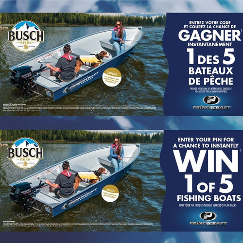 † NO PURCHASE NECESSARY. Must be legal drinking age. Find your PIN code card on the inside main panel. Click here for full contest rules including how to enter without purchase. Total of 5 Fishing Boats available to be won. Approximate retail value is $20000. Odds of winning a Fishing Boat are approximately 1 in 50000. Number of prizes available to be won will diminish as prizes are won/claimed. Redemption of prizes is restricted to Canada and must have a valid boating license at the time of redemption. Items may not be exactly as shown. Contest close date is May 30th, 2022. PIN Codes must be entered online no later than May 30th, 2022.