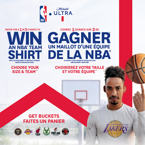 ENTER FOR A 1 IN 3 CHANCE TO WIN† A MICHELOB ULTRA NBA TEAM SHIRT